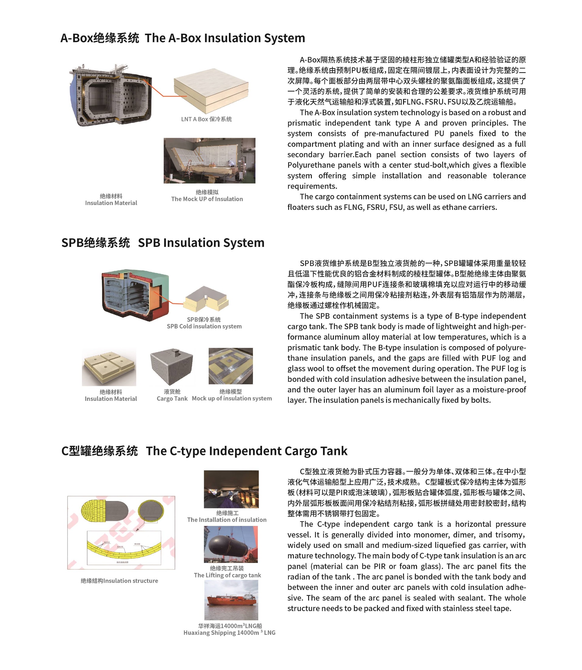 在船舶領(lǐng)域,我們公司根據(jù)FLNG、FSRU、FPSO、LNG、LPG、LEG等不同的船型,從泡沫玻璃、聚氨酯、聚異氰脲酸酯等材料的特性出發(fā)為船東/船廠提供合適的管道設(shè)備支撐設(shè)計(jì),及管道、設(shè)備及儲(chǔ)罐低溫絕緣方案,打造安全、可靠、高性能的海工絕緣系統(tǒng)。 浙江振申是專(zhuān)業(yè)的船舶低溫絕緣承包商,生產(chǎn)低溫絕緣工程中各種保冷材料主要有泡沫玻璃、聚異氰脲酸酯、聚氨酯、保冷管支架及保冷輔助材料密封膠、粘結(jié)劑和瑪蹄脂等,并提供配套的專(zhuān)業(yè)低溫絕緣安裝服務(wù)。目前振申已能夠?yàn)?A型 B型 C型液貨系統(tǒng)提供保冷材料和施工服務(wù),很快振申也將為GTT薄膜型液貨系統(tǒng)提供絕緣服務(wù)。